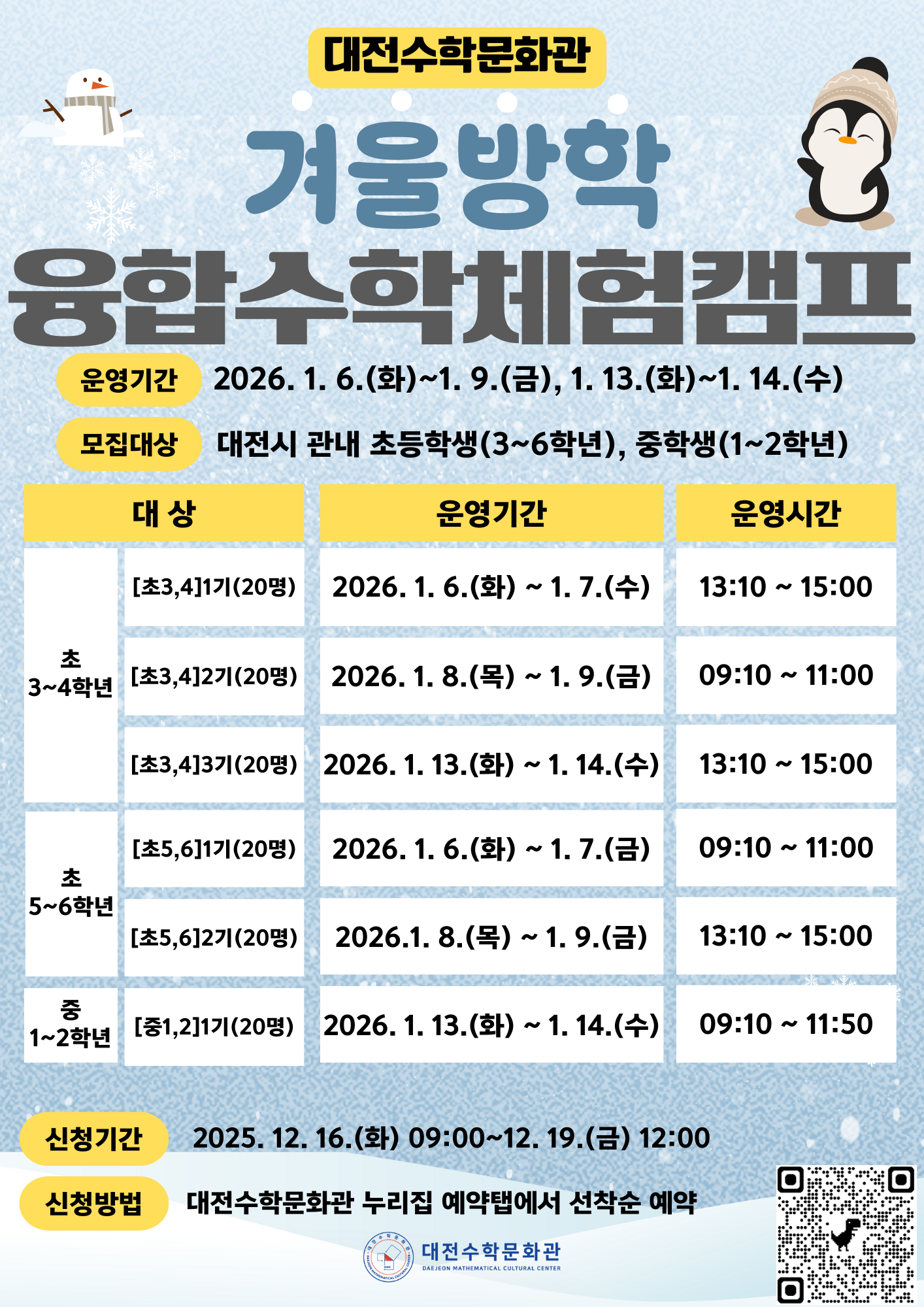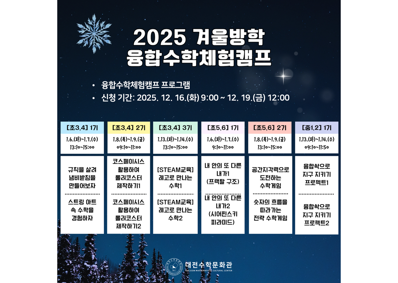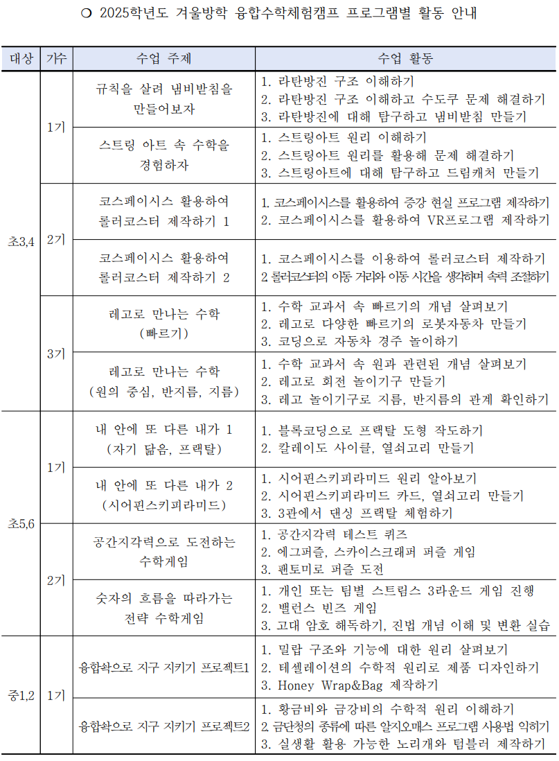 2025학년도 겨울방학 융합수학체험캠프 프로그램 활동 안내
