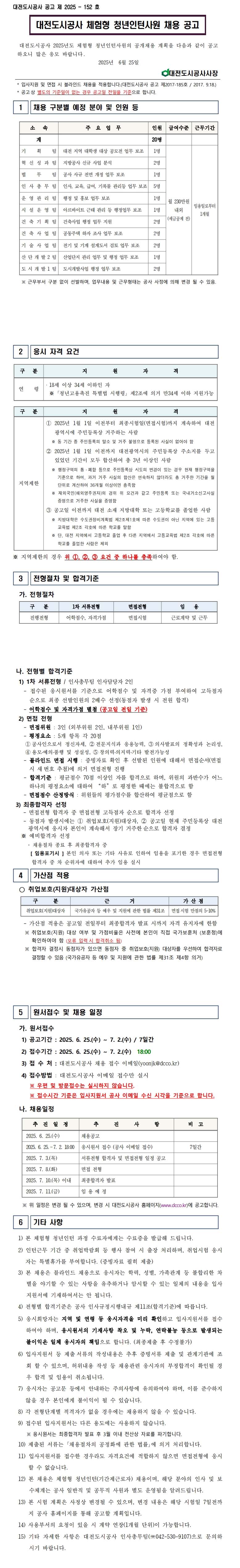 대전도시공사(학력무관)_체험형 청년인턴 채용(~7/2)